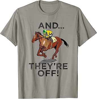 Amazon Com And Theyre Off T Shirt Funny Horse Racing Gambling Gift Tee T Shirt Clothing Shoes Jewelry